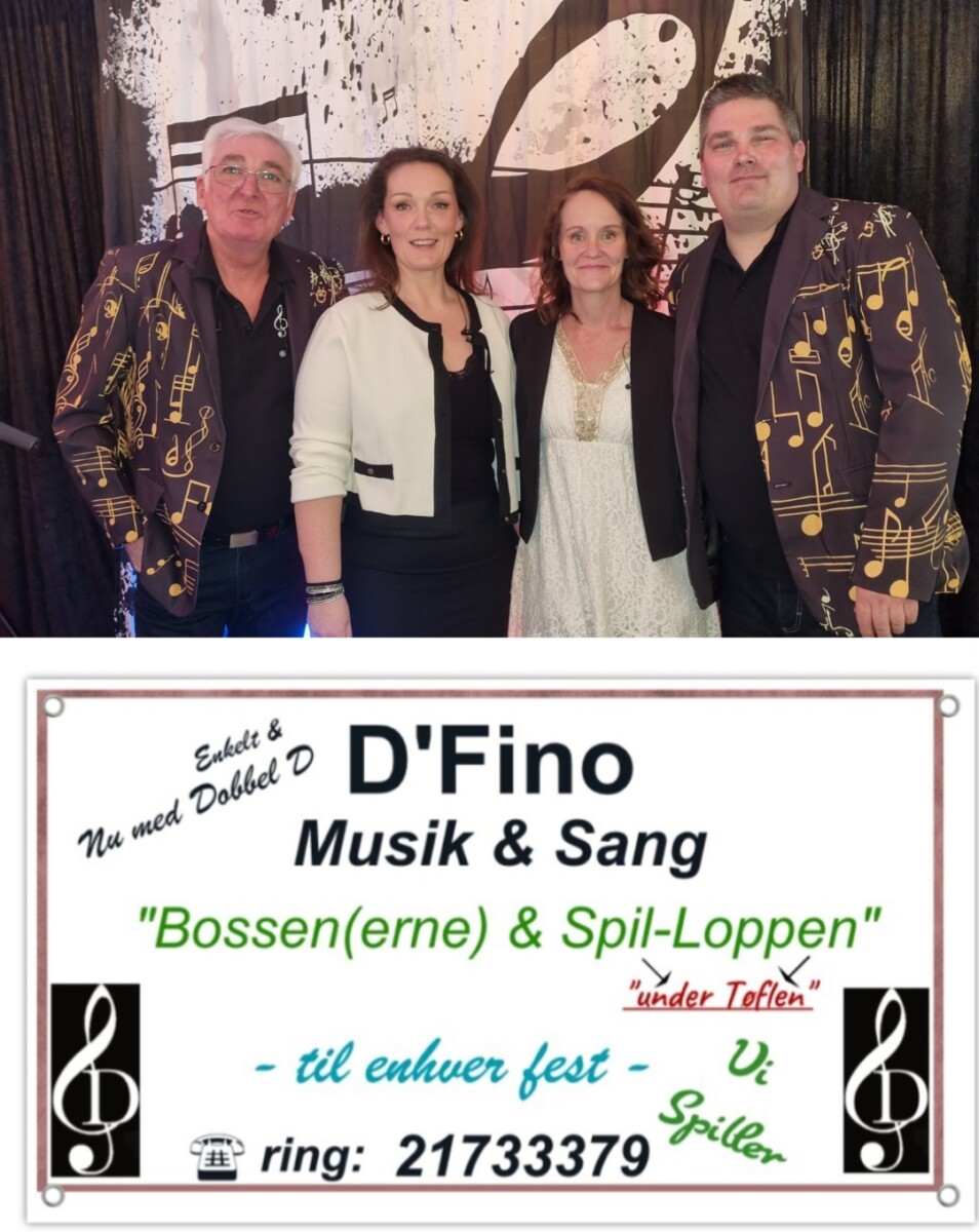 D’fino er en nordjysk duo, der består af Søren og Henrik.De to lune nordjyder giver din fest et løft med deres lune jyske humor, samt brede udvalg af musik!De to herrer kan give din fest alt fra “de gyldne løver” til “lady gaga” og alt bliver spillet med et glimt i øjet. Har man specielle ønsker til bestemte numre prøver de at opfylde på bedste vis!D’fino går ikke af vejen for at løfte festen til yderligere højde hvis en blandt festdeltagerne med en stemme i livet springer ind og synger med.De herrer er også vandt til i deres daglige jobs at jargonen kan blive lidt “løs” så hvis man ligger op til sjov og spas bliver der givet igen med glimt i øjet.Kan varmt anbefale D’fino til din næste fest!De er ikke de billigste på “suppe, steg og is-musik” markedet men kvaliteten og humøret er altid i top (også selvom de møder op med feber og enfluenza i kroppen) og dansegulvet er sjældent tomt.