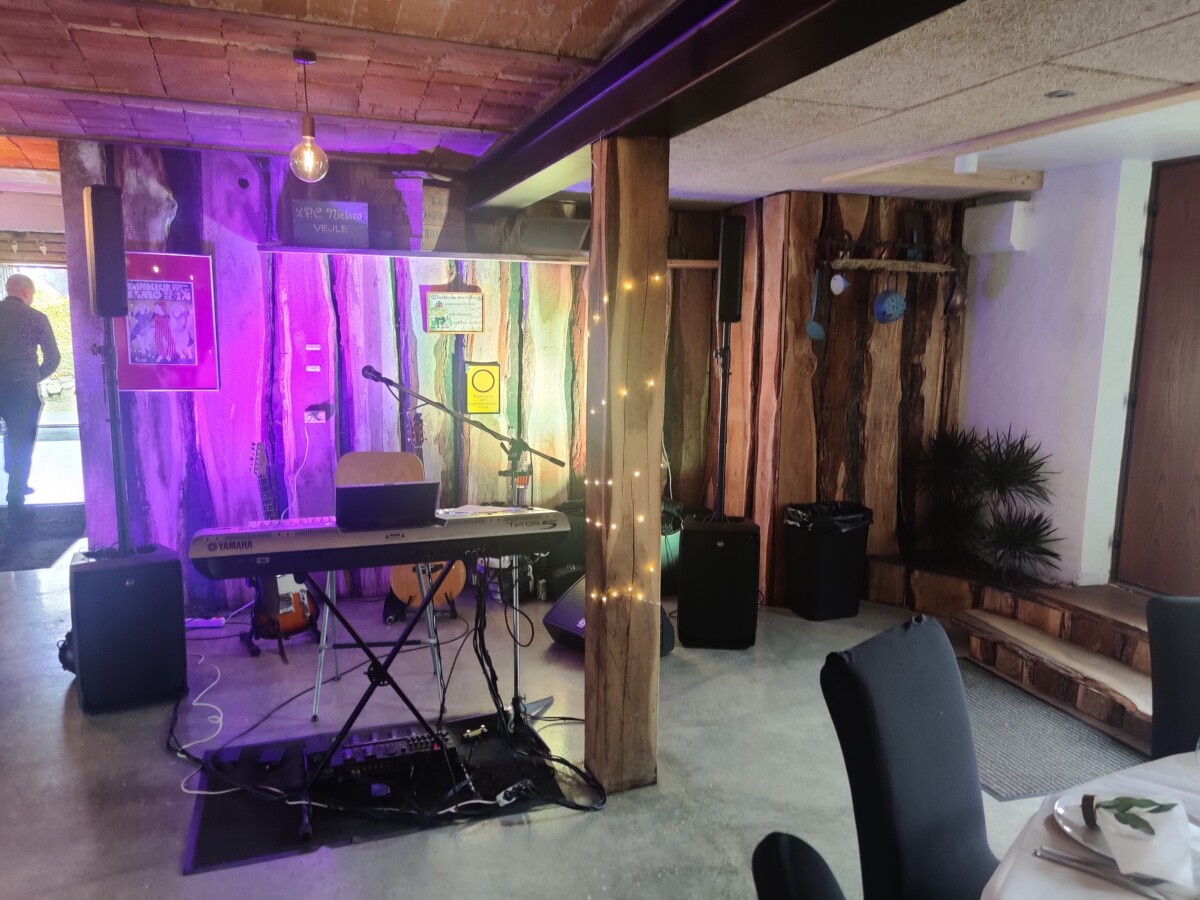 Under spisningen skaber jeg en behagelig atmosfære med stille instrumental musik, der giver plads til samtaler ved bordet. Jeg synger også velkendte sange, som gæsterne kan nynne med på, og jeg sørger for, at musikken ikke overdøver, så folk stadig kan tale sammen ved bordet.