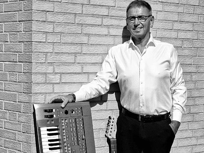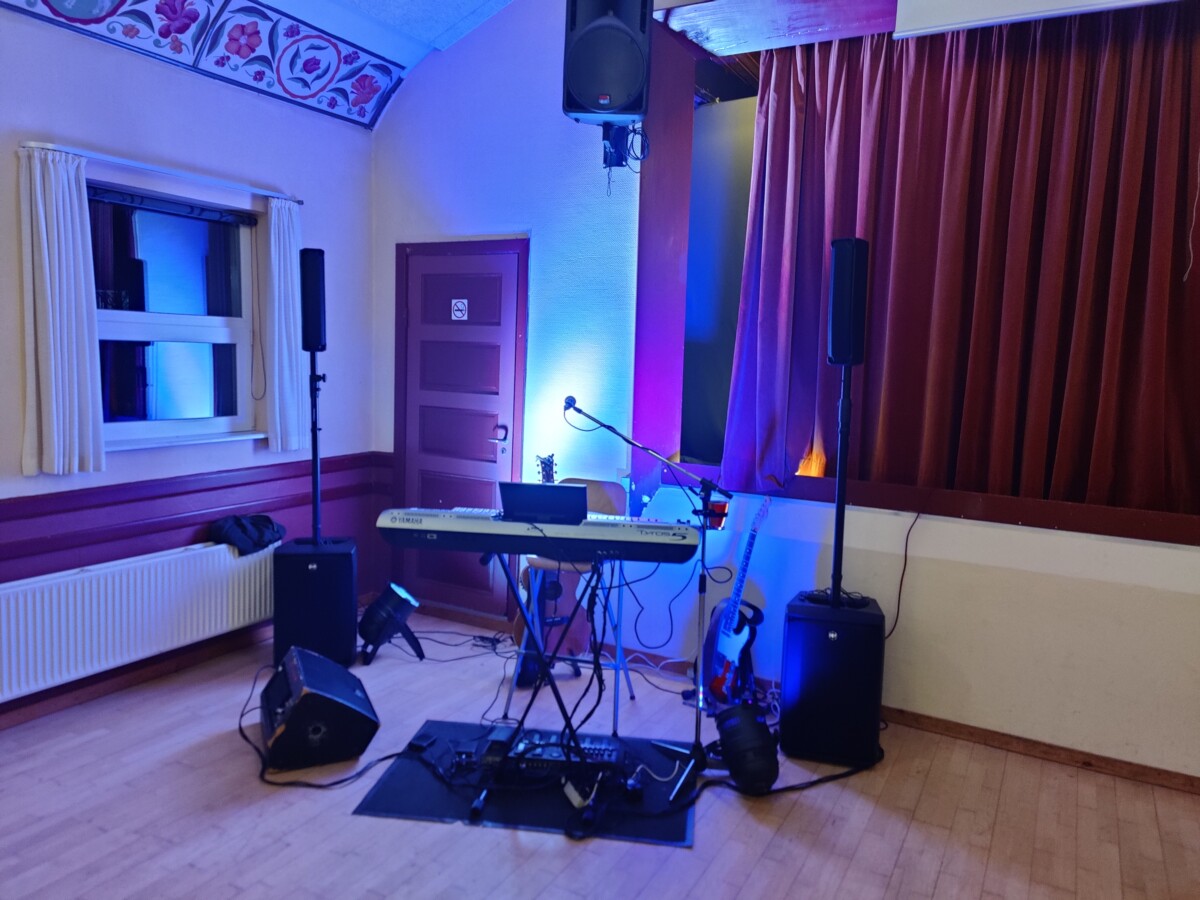 Du får stor lyd med et forprogrammeret keyboard, hvor jeg spiller guitar og synger til.