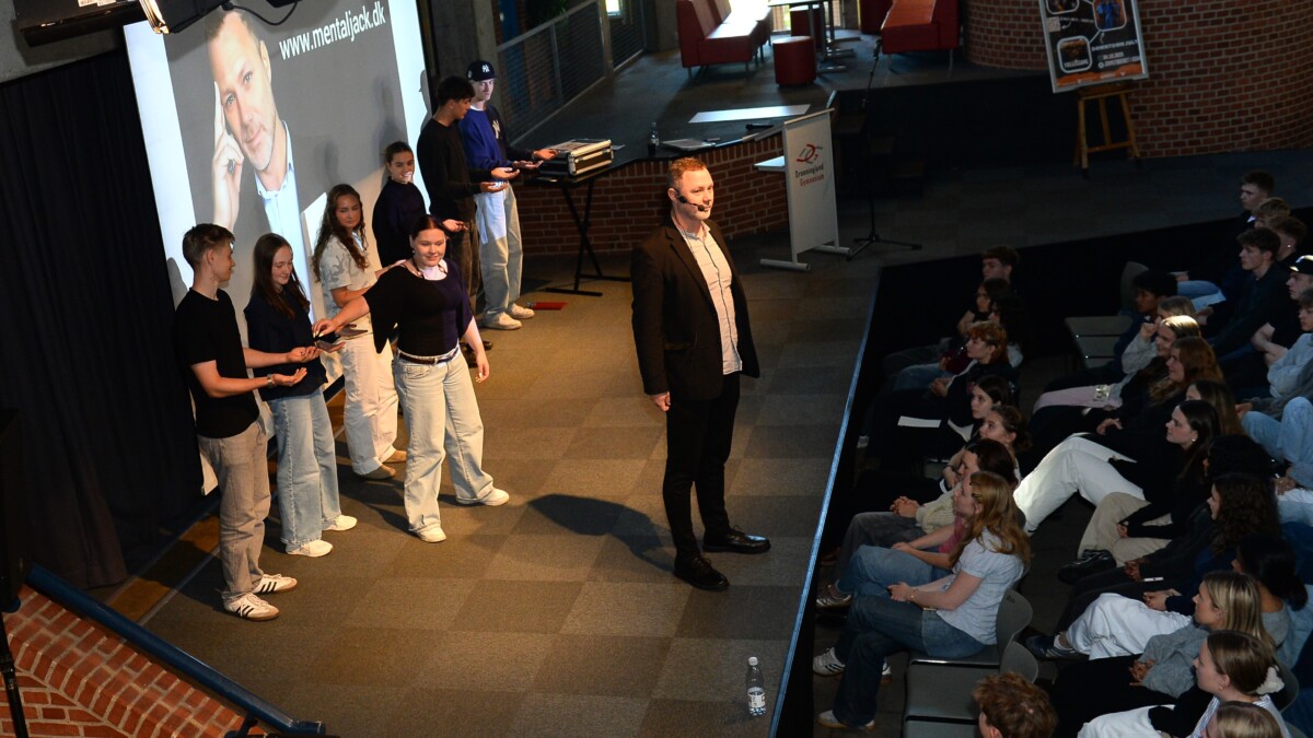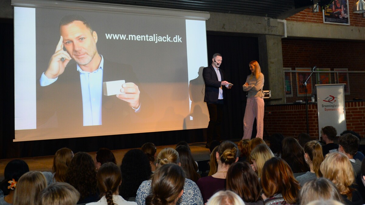 På Hjørring Gymnasium har vi for nylig haft fornøjelsen af Jacob, som vi havde sat på lidt af en opgave: At underholde en spækfyldt festsal, hvor alle skolens 1. og 2.g’ere havde taget plads til årets første fællestime. At konkurrere mod lysten til at tjekke telefonen og snakke med sidemakkeren hos en flok 16-17-årige kan være udfordrende, men Jacob formåede i løbet af sit show at involvere selv de elever, som bevidst havde valgt at placere sig på bagerste række. Flere elever meldte sig frivilligt til at deltage i de forskellige aktiviteter, som i den grad gav anledning til refleksion og ikke mindst frustration - er det virkelig muligt at læse andre menneskers tanker?? Forhåbningerne var at kunne give især vores nye elever et godt indtryk af fællestimerne, og det må man sige, de fik. Det er bestemt ikke sidste gang, vi inviterer Mental Jack til Hjørring